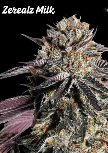 La Zerealz Milk exhibe un impresionante despliegue de colores, que van desde verdes profundos a púrpuras vibrantes, recubiertos de una generosa capa de tricomas que brillan como la escarcha. Los cogollos son densos y bien formados, y desprenden un aroma cautivador que alude a su herencia Zkittlez con ráfagas de notas afrutadas y cremosas.