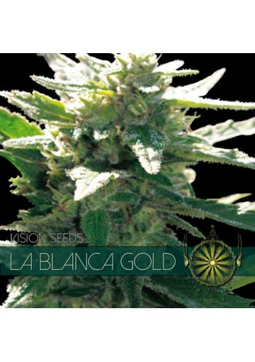 El linaje de La Blanca Gold es una poderosa combinación de Super Skunk, Great White y Skunk #1. Esta mezcla ha dado lugar a una variedad extremadamente resinosa, capaz de desarrollar cogollos densos y brillantes en todas sus ramas.