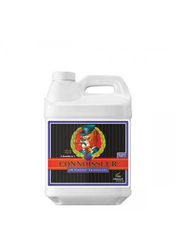 Se empieza a usar pasada una semana de haber comenzado la floración, y sus efectos sobre el rendimiento son formidables. Este abono de floración seguro y fácil de usar ha sido probado en centenares de cultivos hidropónicos, y ha sorprendido a científicos y cultivadores, creando flores más grandes, pesadas y densas de lo que se creía posible en cultivos de interior. Connoisseur está llamado a ser el referente en rendimiento de floración para los próximos diez años como mínimo. La combinación que ofrece de ingredientes propios y exclusivos y la tecnología de su formulación representa un salto cuántico para la calidad y la cantidad en las cosechas hidropónicas. Aumento del número y la calidad de las flores y frutos. Contiene determinadas clases de aminoácidos y poli-alcoholes. Utilizando CONNOSSEUR A + B conseguirá una aceleración en la floración y la maduración de frutos, aumento de la potencia, el gusto y el aroma y un sustancioso aumento del valor en el mercado de sus cosechas de plantas aromáticas y medicinales, frutas u hortalizas. Aplicación 2.6 mL / L