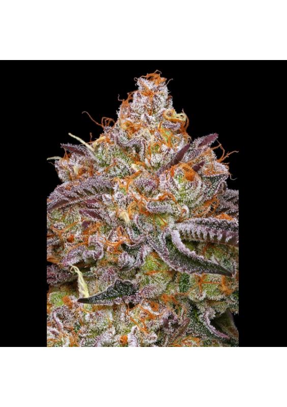 Las plantas de Granny Candy presentan tallos morados con matices rojos y verdes en climas cálidos, y un follaje cubierto de escarcha cristalina. Sus cogollos son densos y vibrantes, ideales para destacar en cualquier cultivo de interior o invernadero.