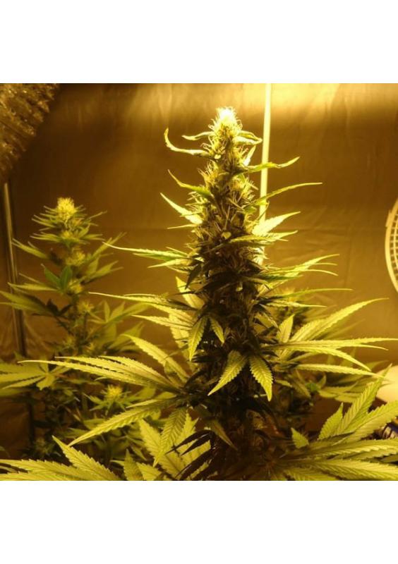 AK-48 es un híbrido mayormente índica que hereda la fortaleza estructural y la densidad de cogollos típicas de las variedades afganas, junto con la energía y el aroma dulce de sus ancestros sativos. Su tamaño medio y estructura achaparrada con cola central dominante y ramas laterales fuertes la hacen perfecta para sistemas Sea of Green (SOG) o Screen of Green (ScrOG). Con una altura promedio de 120 cm, mantiene un perfil bajo, ideal para cultivos discretos en interior, invernadero o exterior.